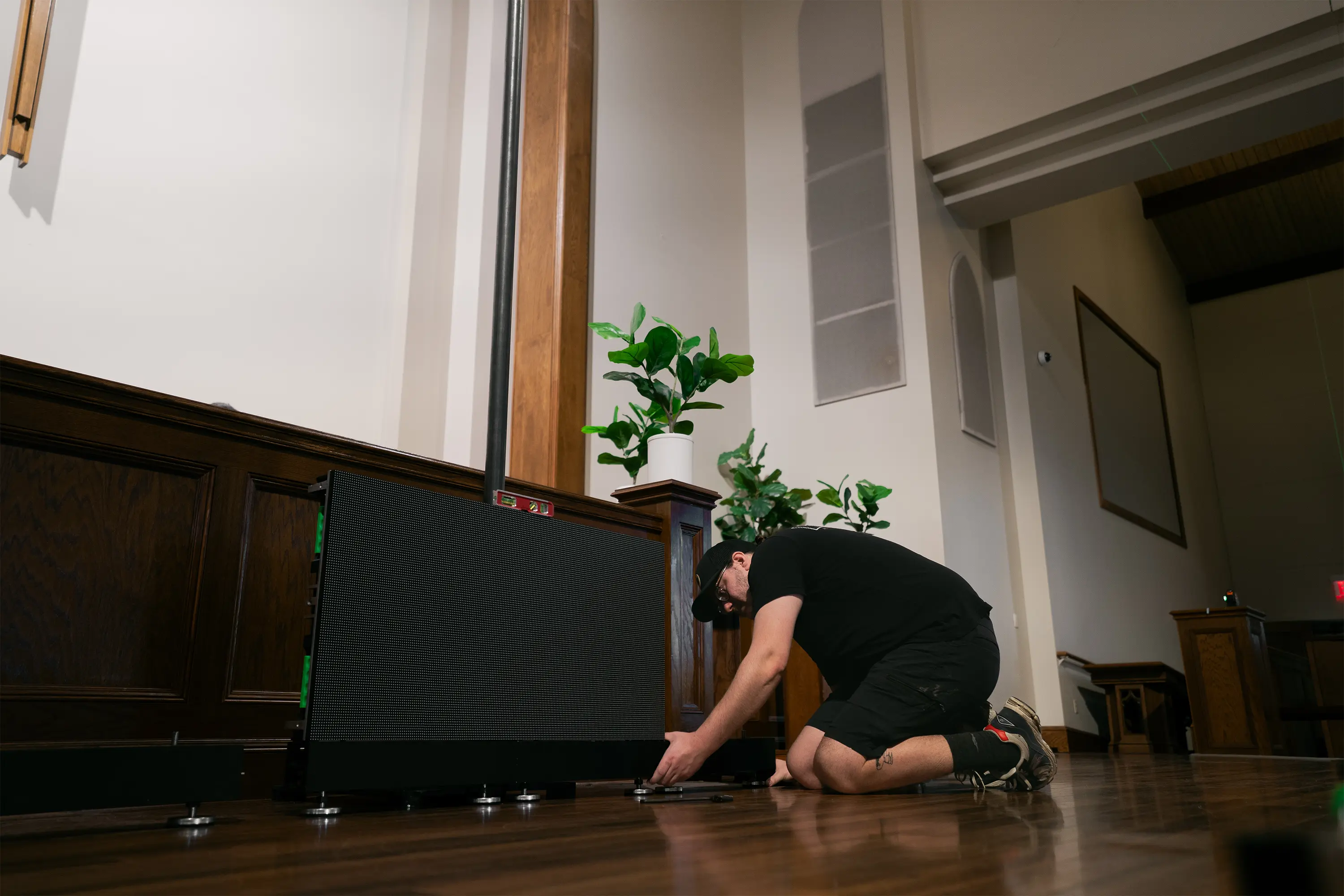 This Easter, our friends at Asbury Tulsa ask us to provide and install a LED wall in their chapel space to serve as an overflow room. The team came out and installed a 60 panel ground supported LED screen.